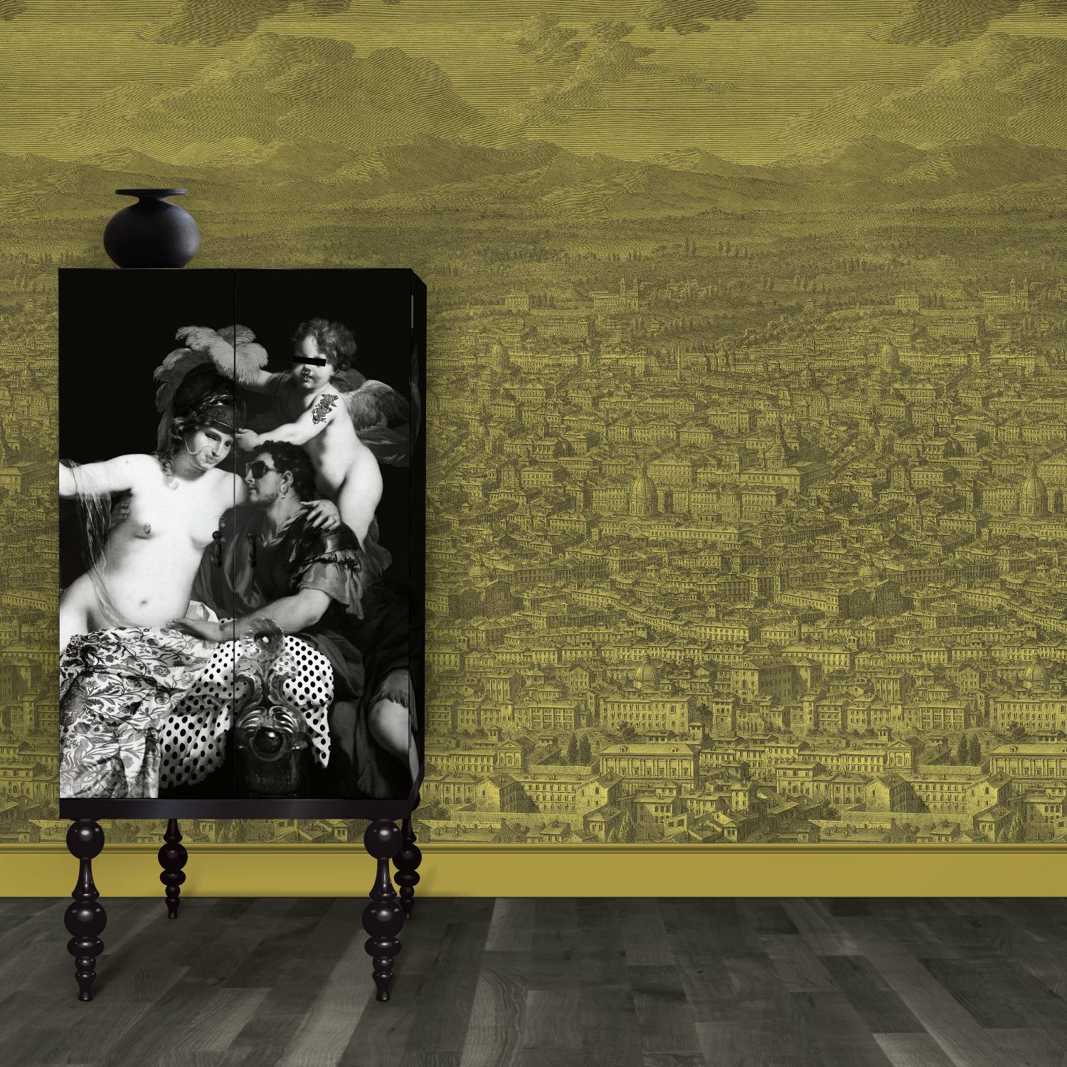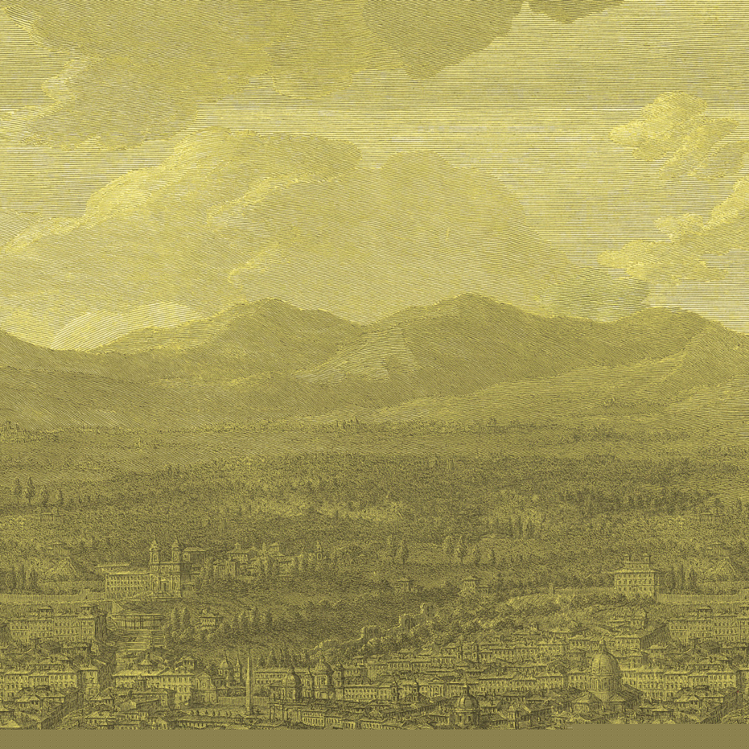 Eternally Rome Ochre, is an engaging, engraved wallpaper embracing the romance and antiquity of the Eternal City. Nestling beneath billowing clouds and protected by the seven hills, Rome's sprawling city, steeped in myth and legend undulates to the tune of its fascinating history, its thousand churches, endless streets and alleyways, monuments and palaces.The landscape and architecture in this design, tinted an exquisite, warm ochre yellow, has been composed to continue ad infinitum allowing you to create the breathtaking vista of Eternally Rome whatever the size of your walls.