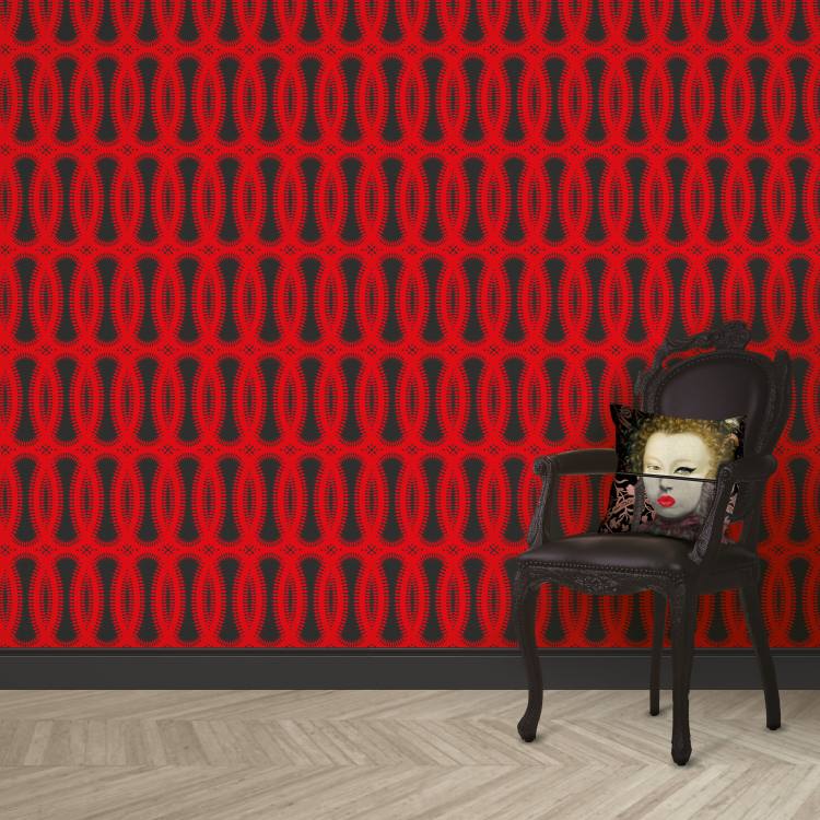 Sunzii wallpaper in Chinese Red exudes a punky prickliness whilst maintaining an über glamorous vibe. Spiky, jagged coils overlap and intersect to form a dynamic, contemporary pattern. The thorn-like linking bands in vibrant Chinese red sit on a rich near black background creating a dazzling contrast, projecting and emphasising the sinuous spiky loops. The design is printed onto the most exquisite wallpaper, with a luxurious, finish.DESIGNER