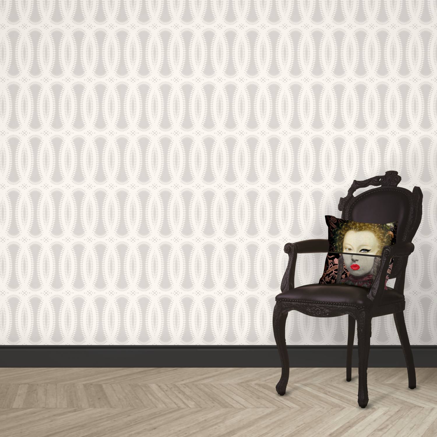 Sunzii wallpaper in Silver Grey exudes a punky prickliness whilst maintaining an über glamorous vibe. Spiky, jagged coils overlap and intersect to form a dynamic, contemporary pattern. The thorn-like linking bands in the palest grey sit on a delicate warm silvery grey background creating a gentle contrast, softly emphasising the sinuous spiky loops. The design is printed onto the most exquisite wallpaper, with a luxurious, finish.DESIGNER