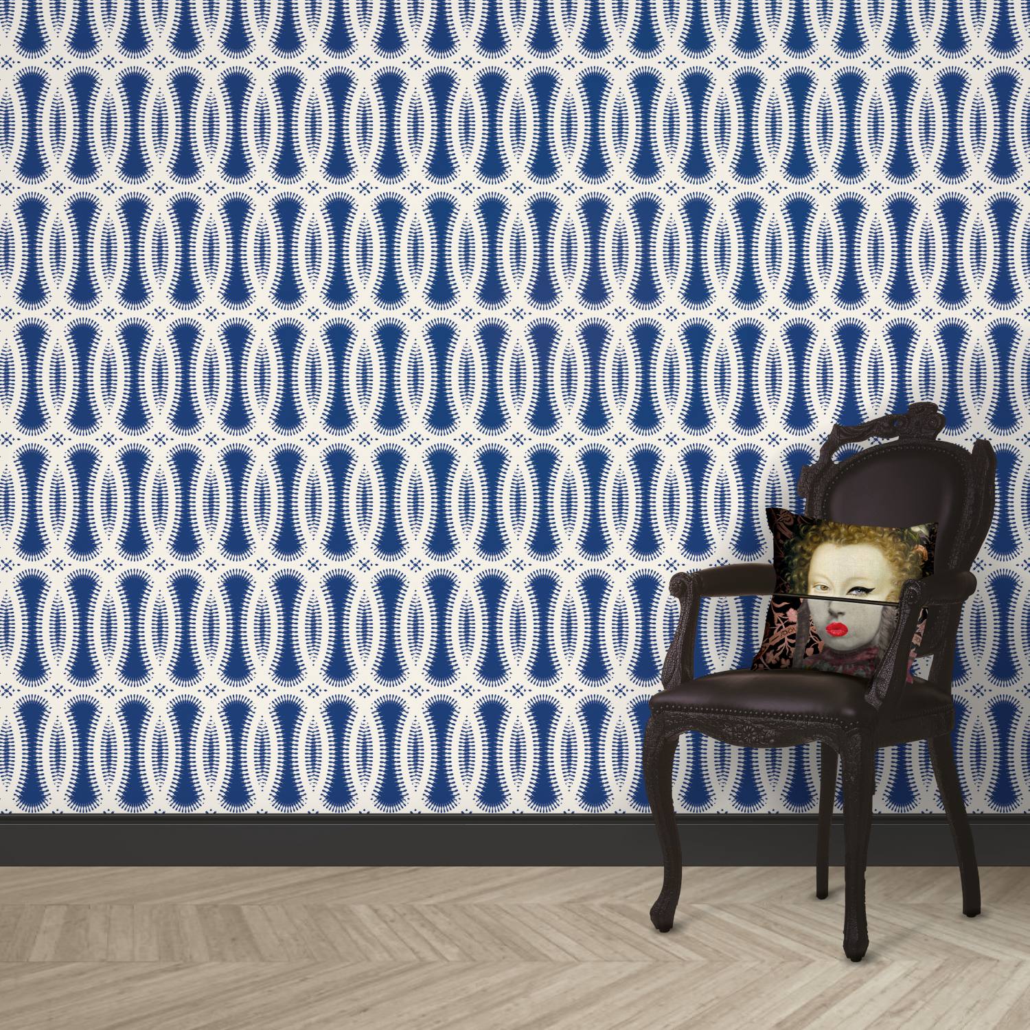 Sunzii wallpaper exudes a punky prickliness whilst maintaining an über glamorous vibe. Spiky, jagged coils overlap and intersect to form a dynamic, contemporary pattern. The thorn-like linking bands in the palest grey sit on a rich royal blue background creating a striking contrast, emphasising the sinuous spiky loops. The design is printed onto the most exquisite wallpaper, with a luxurious, finish.DESIGNER